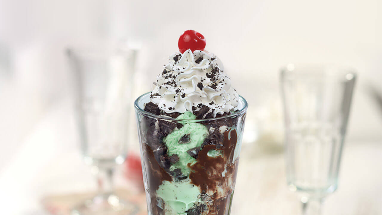 Mint Fudge Ice cream, Oreos , brownies , hot fudge and whip cream