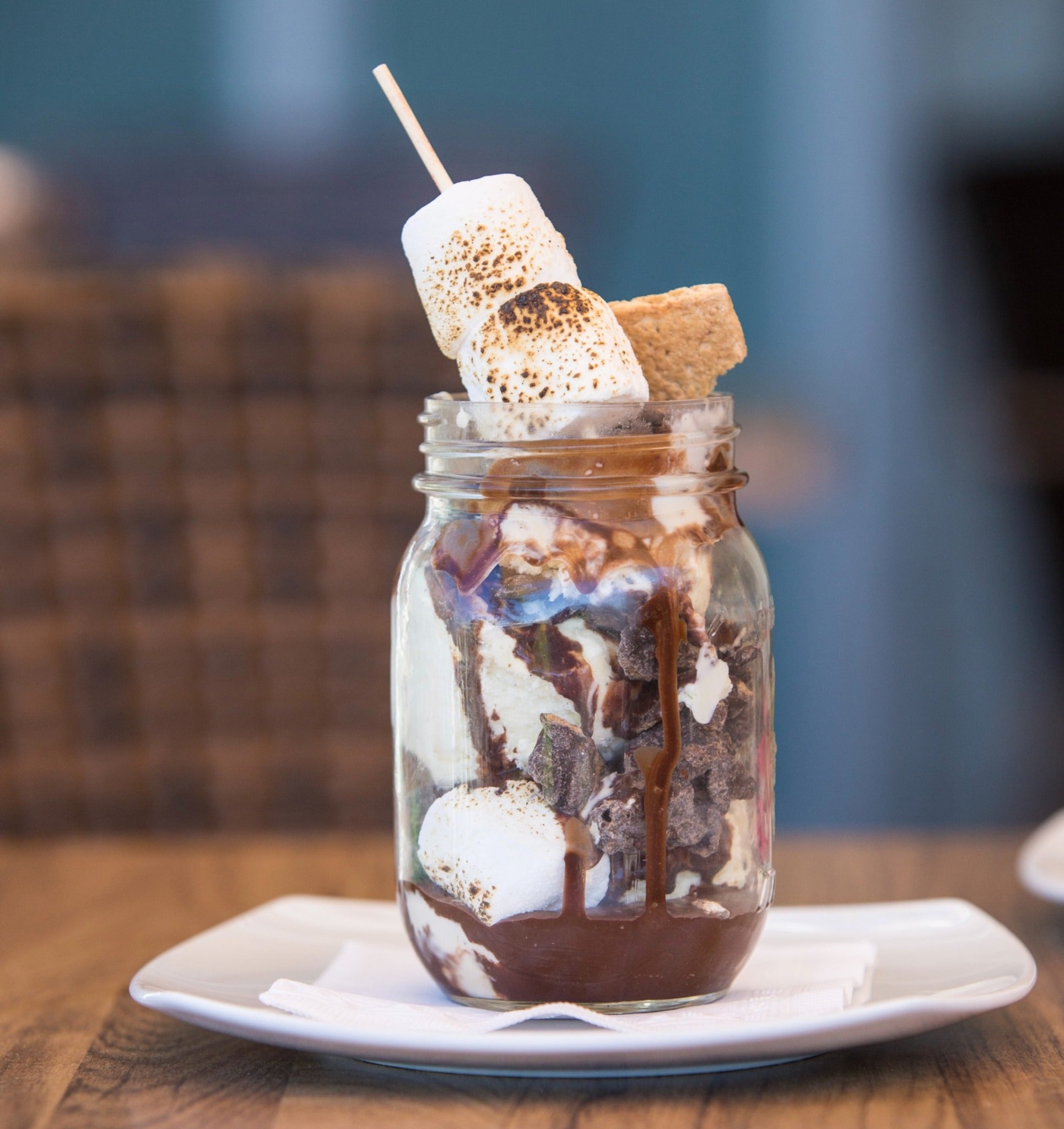 Vanilla Ice cream , chocolate chips, graham crackers , marshmallows sauce , Hershey's syrup and whip cream